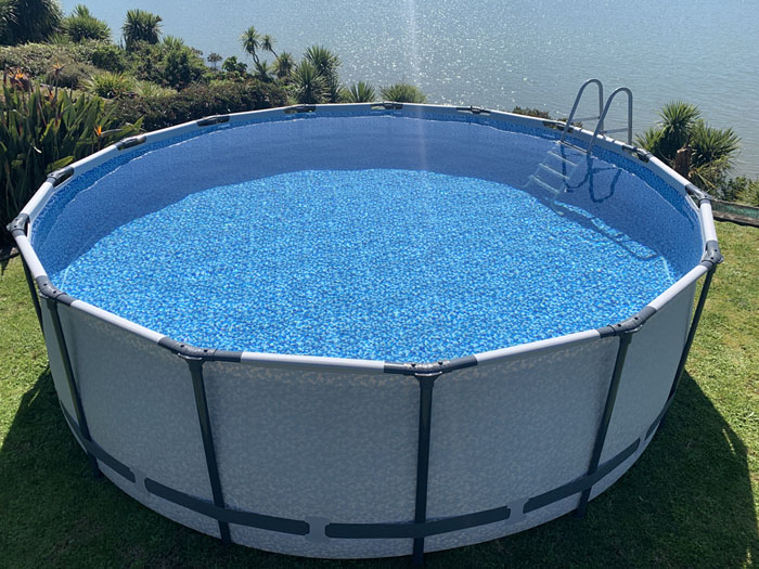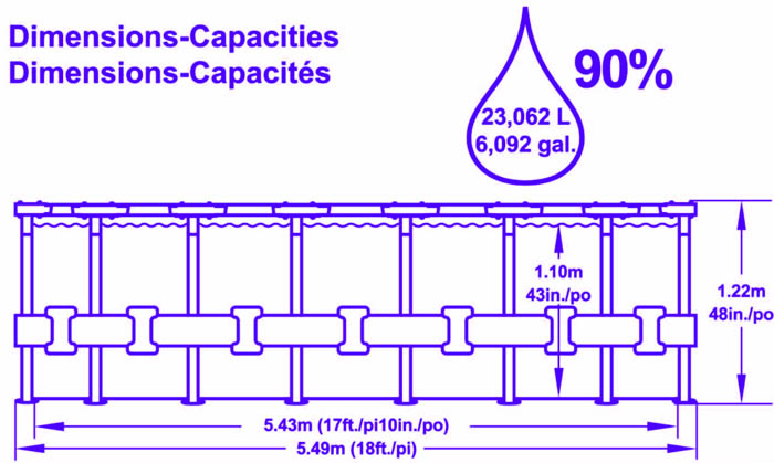 The 5.49-metre width and 1.22-metre height give this pool an impressive water capacity of over 23,000 litres when 90% full. Despite its size, setup is simple and requires no tools. A built-in flow control drain valve allows for quick and clean draining when needed.